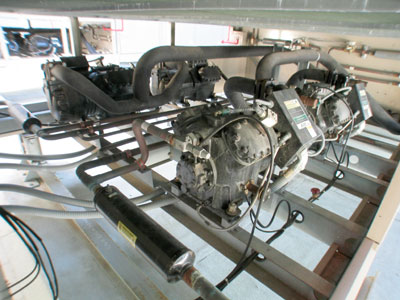 of pipes with obvious warning colors and markings, ductwork shaking from