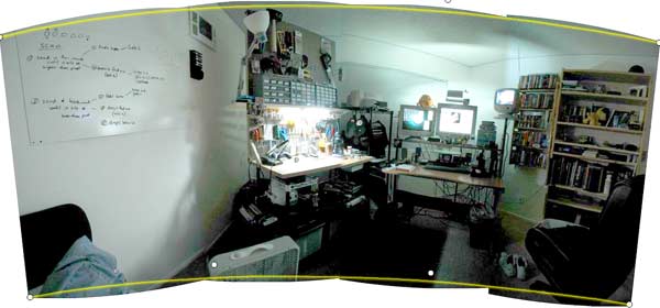 Because of the distorted verticals, when stitched, the panorma pulls in on one side and
